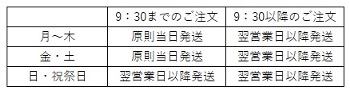※日・祝祭日は発送を行っておりません。翌営業日以降順次の発送となります。